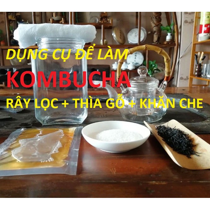 Freeship- [ Phụ Kiện ] THÌA GỖ + RÂY LỌC + KHĂN CHE Miệng Bình Làm trà KOMBUCHA Siêu CHILL. mua tại đây